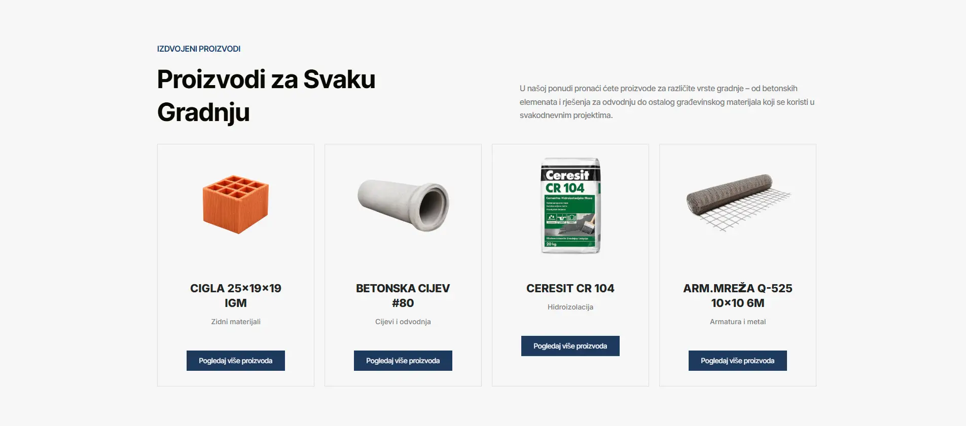 Nova web stranica strukturirana je kroz nekoliko sekcija – predstavljanje tvrtke, prikaz proizvoda, galeriju i kontakt informacije. Stranica je optimizirana za brzinu učitavanja i mobilne uređaje, kako bi korisnici mogli jednostavno pristupiti sadržaju bez obzira koriste li računalo, tablet ili mobilni telefon.